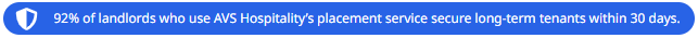 92% of landlords who use AVS Hospitality’s placement service secure long-term tenants within 30 days.
